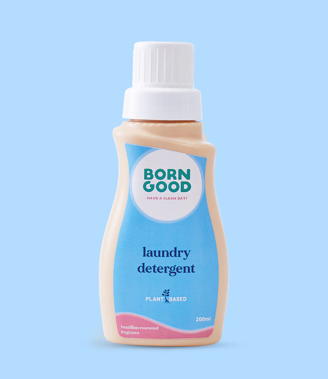 Born Good's plant-based liquid detergent keeps your clothes feeling soft and fresh. It's non-toxic ingredients are safe for our environment and safe in contact with our skin. The powerful plant-based ingredients effectively remove all tough stains.