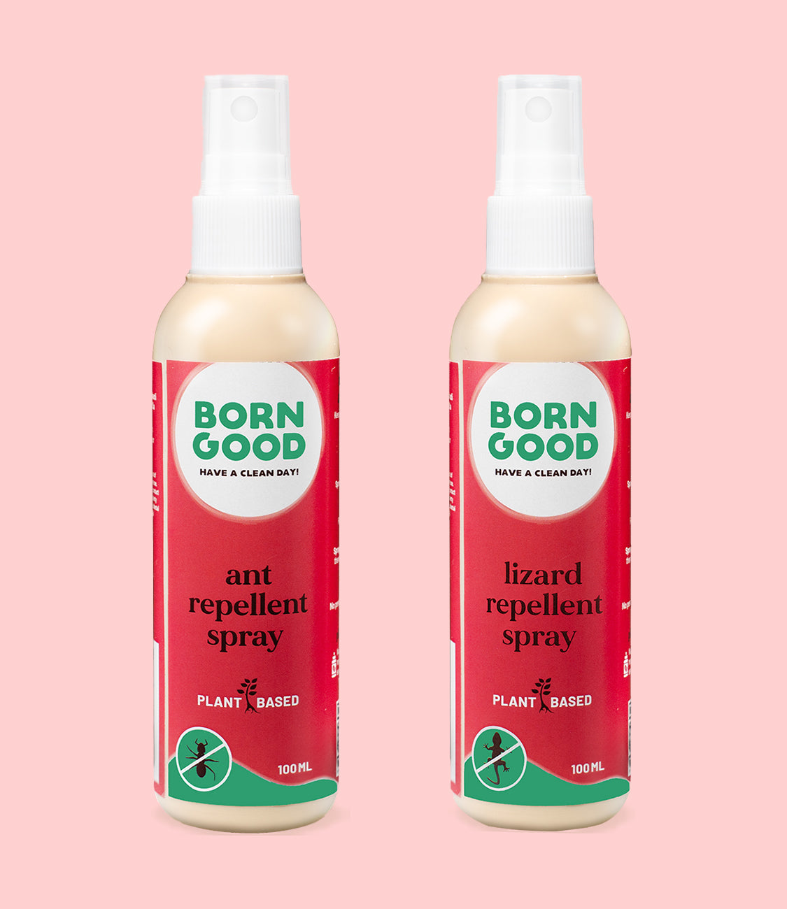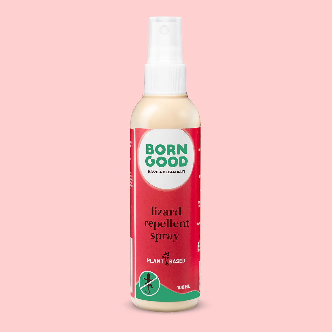 Advantages of Born Good Plant-based Lizard Repellent over ordinary lizard repellent Born Good lizard repellents contain natural ingredients that only repel insects and do not kill them unlike ordinary lizard repellents. They also do not contain any poison or pesticides making them pet and kid safe. Benefits of the Born Good Plant-based Lizard Repellent over ordinary lizard repellent The fragrances in this product are very strong and repel Lizards immediately making it a very effective and quick repellent. It is able to reach all corners of the house easily. As it is formulated with only 4 natural ingredients, it safe for everyone at home including kids and pets. Plant Based ingredients used in our Plant-based Lizard Repellent over ordinary lizard repellent Cedarwood oil Need oil Lemongrass oil Sugarcane extracts How to use Born Good Plant-based Lizard Repellent over ordinary lizard repellent Spray liberally on places you see lizards. Focus on entry points. Spray every night for the 1st week and then once a week for an Lizard free home