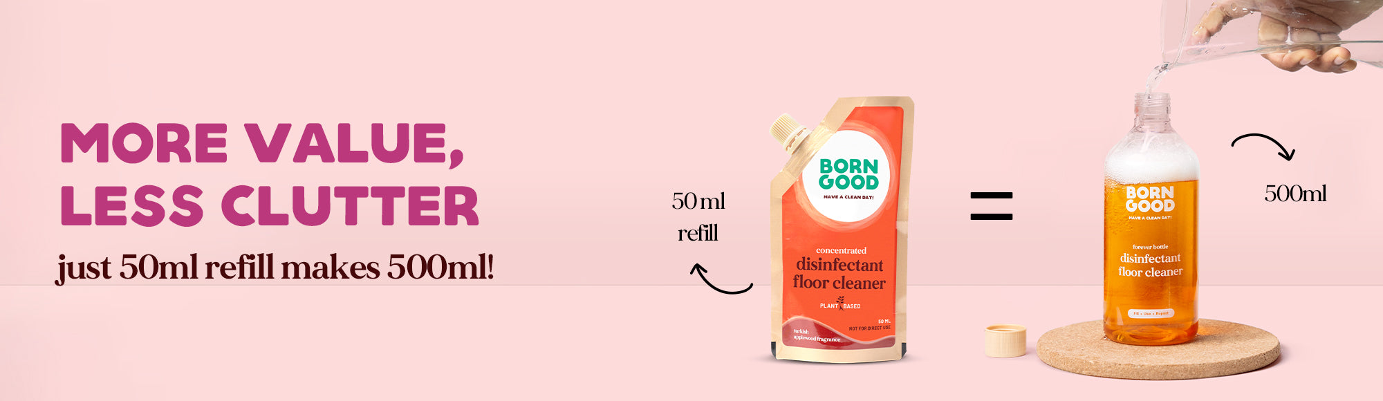 At Born Good, our innovators have worked hard to come up with a range of concentrate cleaners that consume less water in the manufacturing process. As they are shipped in a high concentration form, they weigh less and consume less energy in transport. Therefore, they have a lower carbon footprint as compared to ordinary cleaners.